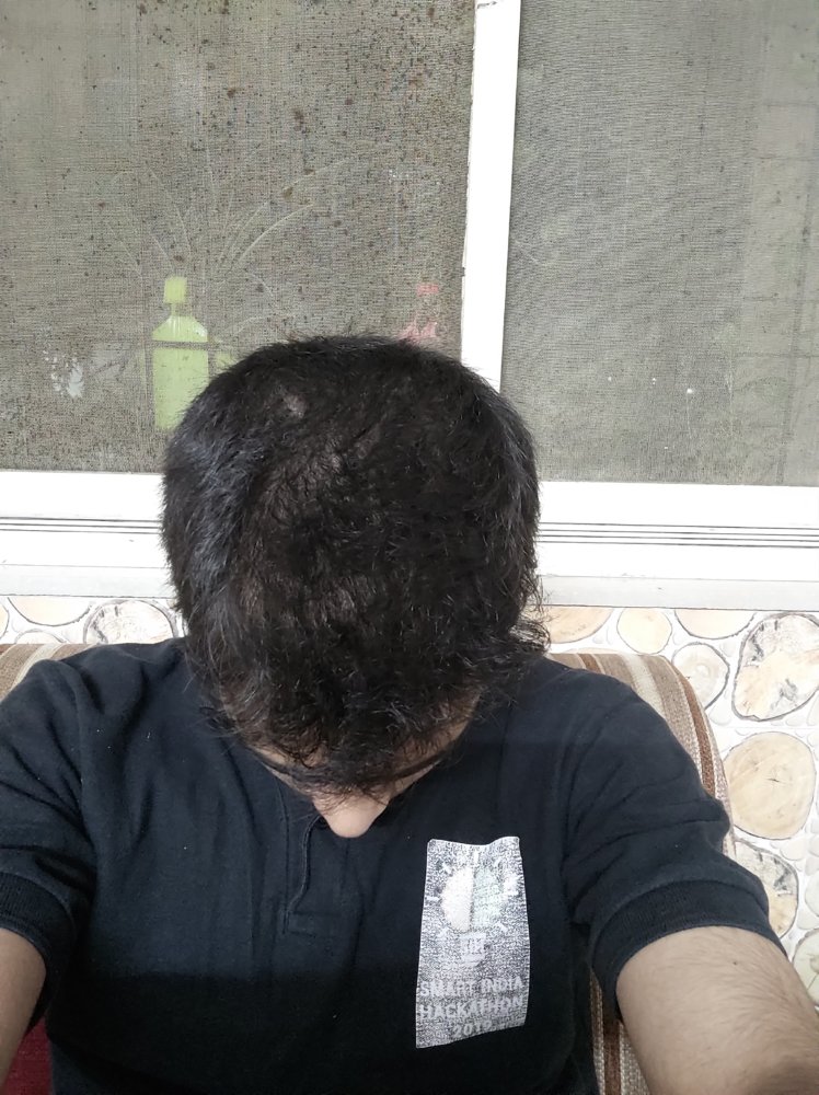 Is that amount of scalp visible normal? I don't think it is. My hairline hasn't receded much, but the hair has become significantly thinner over the last 2 years or so at the top. Also, the thinning is much more on my right side than the left side, as can be seen in the pictures. Is this pattern baldness, or it could be a temporary condition?