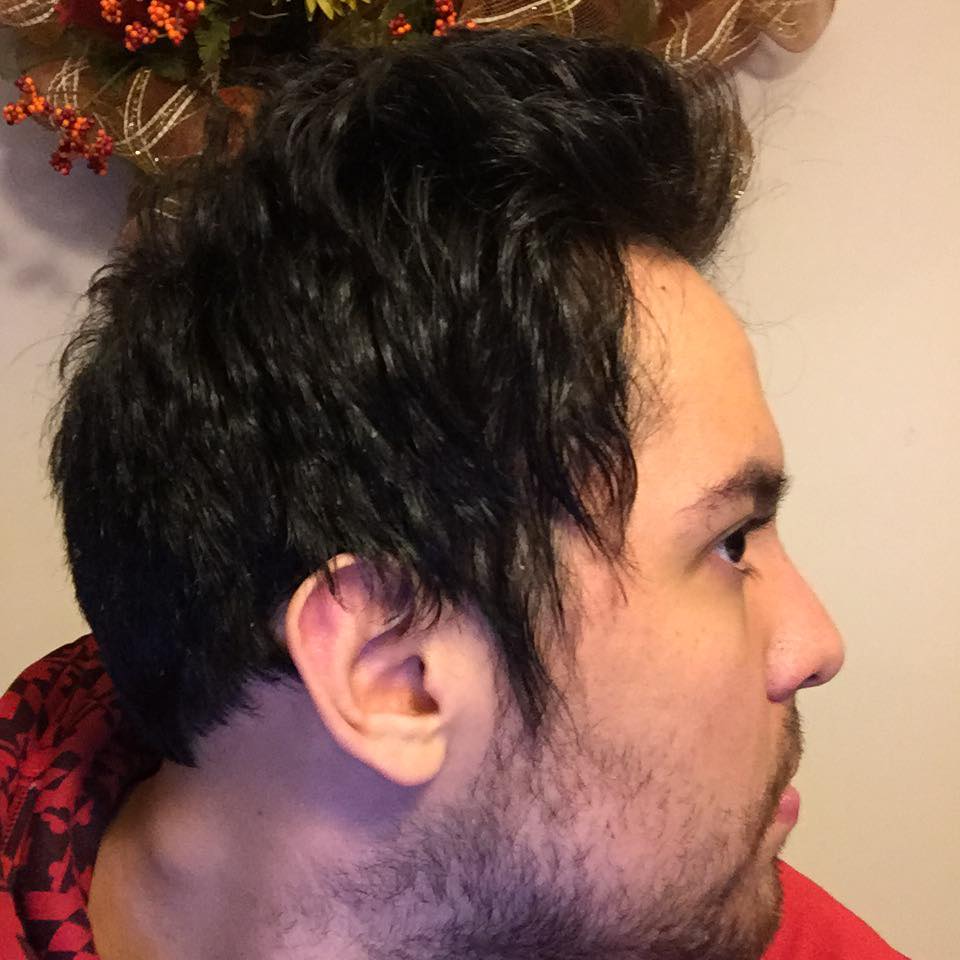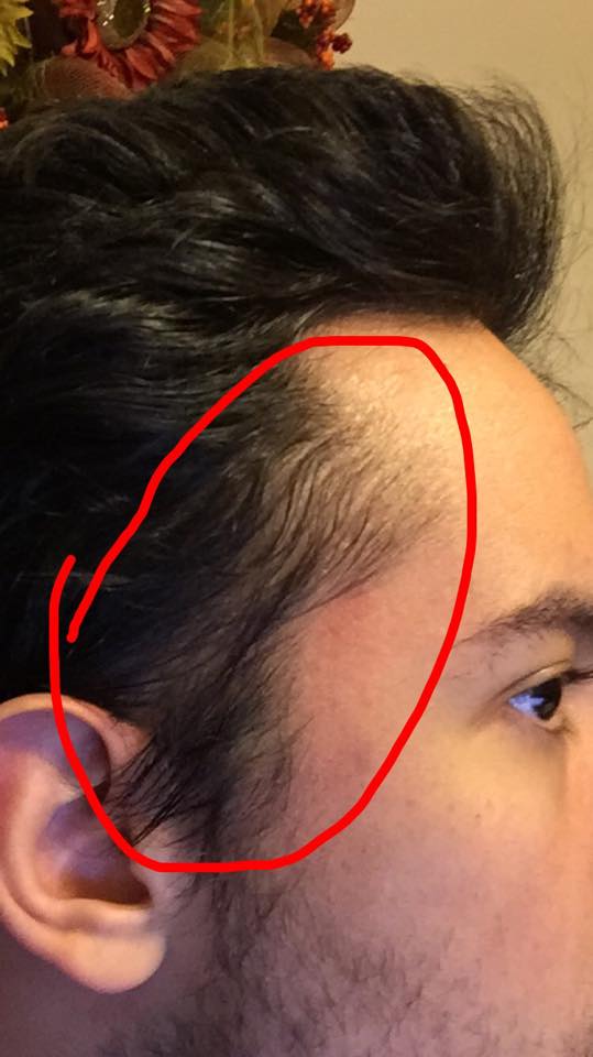 Moreover he has psoriasis. We don't know if he has scalp psoriasis causing the thinning. Go to a dermatologist Tenorio