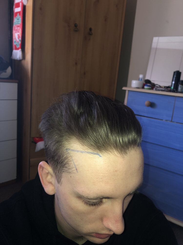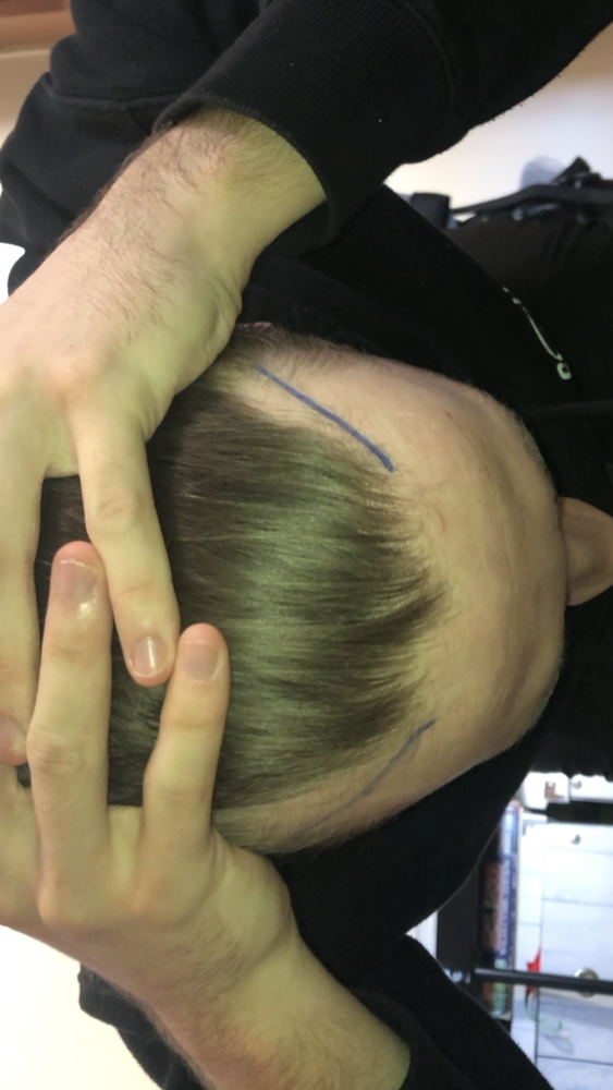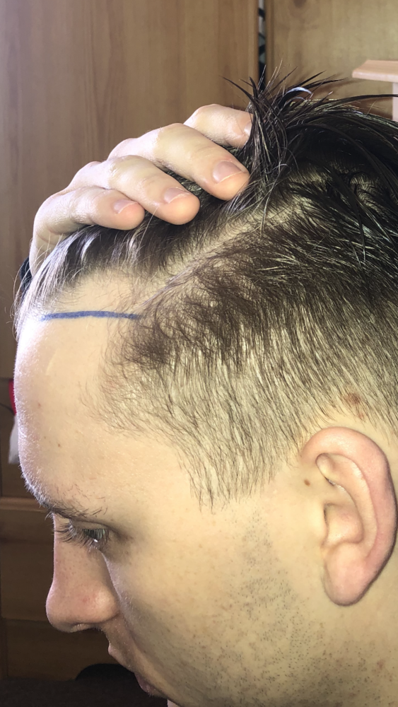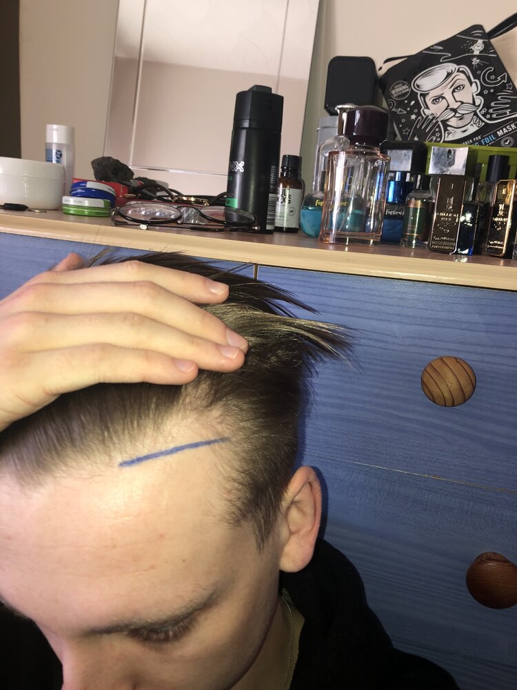 It was never there, the line is where I want it and measure as a normal hairlinePost a pic of your hairline, when it was still where that blue line is.