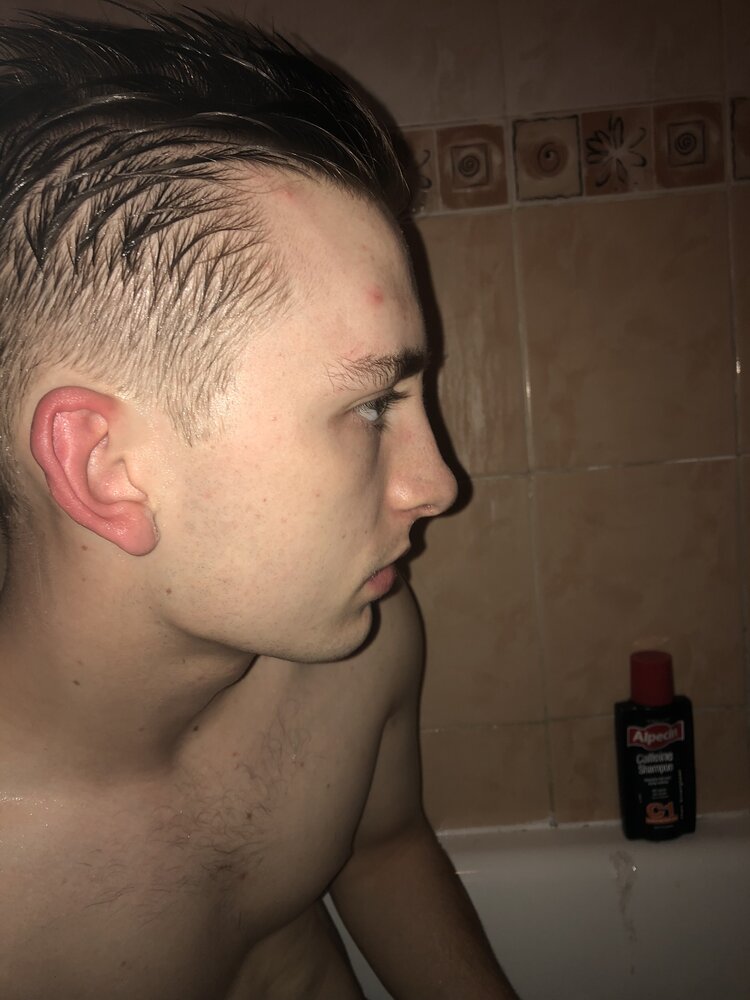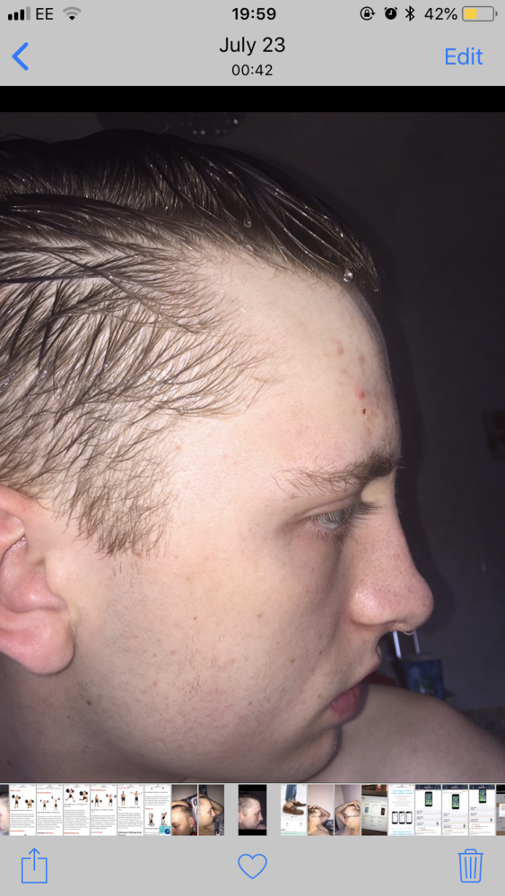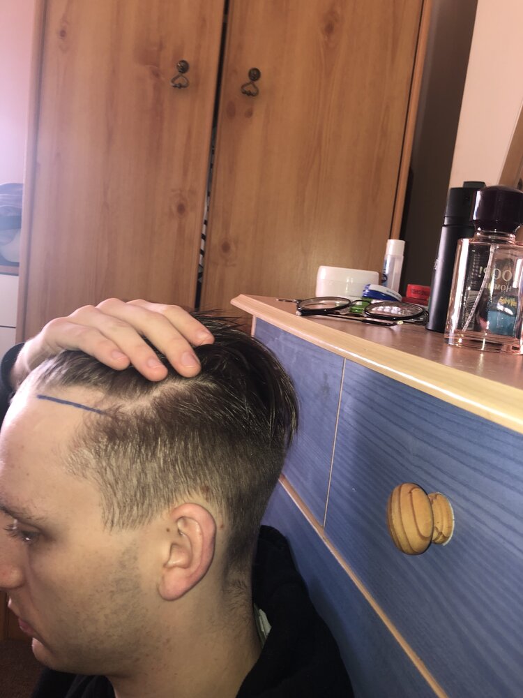 This is the oldest photos I have which is 3/4 years agoPost a pic of your hairline, when it was still where that blue line is.