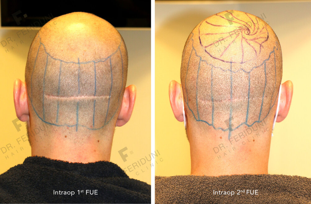 It was agreed that Dr Feriduni was hopeful to extract 2,000 to 2,500 grafts for this procedure and it was agreed the vast majority would go to the crown region to create the full head of hair, with a small amount being implanted into the now repaired and far less noticeable strip scar and a small amount for a small section of my hairline where I lost a few grafts following my procedure last year. I had stated to Dr Feriduni that as he had done such a great job on my strip scar repair, I felt it was not too noticeable now and my priority was the other areas. However, Dr Feriduni explained that there is no need to be concerned about ‘wasting’ donor site grafts on the scar area as any grafts used would be implanted back into the donor area, so this common concern would not be something to worry about.