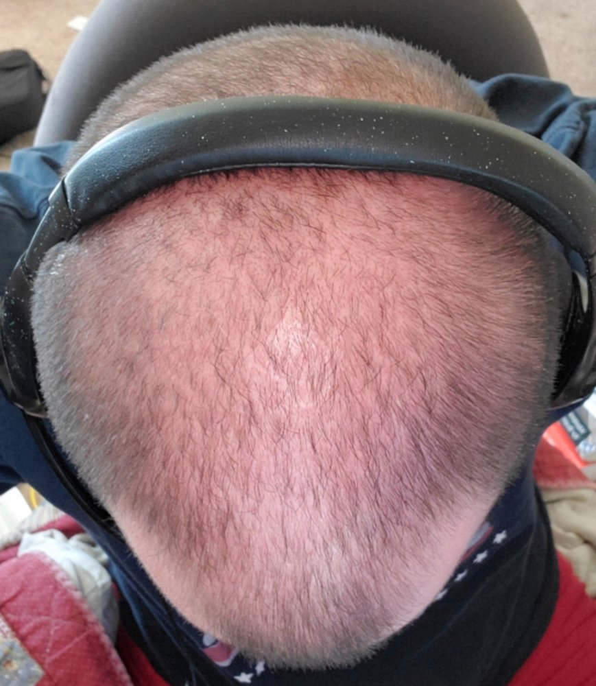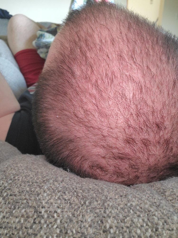 The photo on the left is one year ago about 1.5 years into fina. The photo on the right is now. I am going to make sure I religiously stick to my routine and revisit the question in a month. If any of you guys know or remember Georgie, she pointed out to me when I showed her the pics that little black dots are still all over, so the hairs might still be there and growing either due to a shed or the way I cut them. If I don't look like the photo on the right again by May 14-15 I'll come off of the drugs and shave my head.