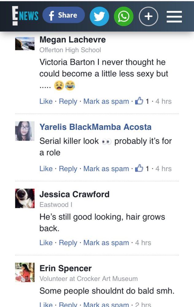 My "favourite" comments are the ones from these sl*ts talking about "serial killer look" and "creepy uncle". I mean, it is ok that they are no longer attracted to a now ugly man (who wants to blame them?), but treating ugly people like some perv is not acceptable. Hope they get treated like sh*t from the next chad they are banging.