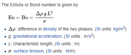Computing Bo, we find Bo = 4.9*10^(-5) = 0.000049. Why? Because the characteristic length is small, and the length squared is even smaller. The denominator - representing surface tension - is five orders of magnitude more important. We are nowhere close to the body forces mattering.