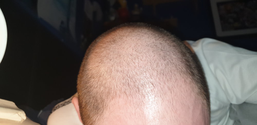 My hairline is gone but have this hair left in my head this is about 14 days growth from shaving