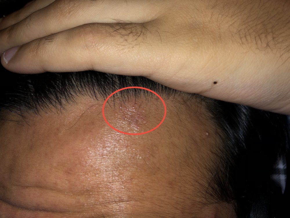 I've been using finasteride for about 8 months or so. I've started adding minoxidil into the regimen. It's Rogaine 5% extra strength foam. I apply it once a day. I ended up getting this blister as you can see in the image, it's more crusty looking. It's not painful or anything, it's jsut there and i dont know what it is. Will it cause scarring ? and did any of you guys it when you started minoxidil. I mean its been about a week and i can see minor hairs coming out but then these are appearing on my forehead as you can see too, i am using the foam so i'm not sure how it is dripping :s.