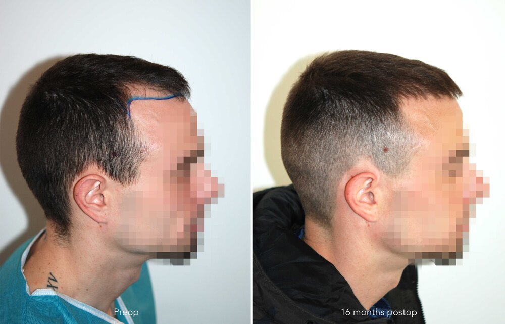 Follicular Unit Extraction to attain an aesthetic reconstruction of the hairline.