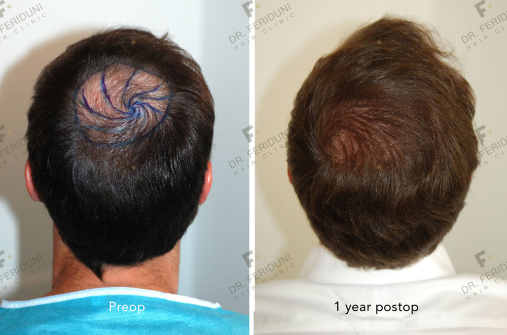 Follicular Unit Extraction to attain an aesthetic reconstruction of the vertex area.