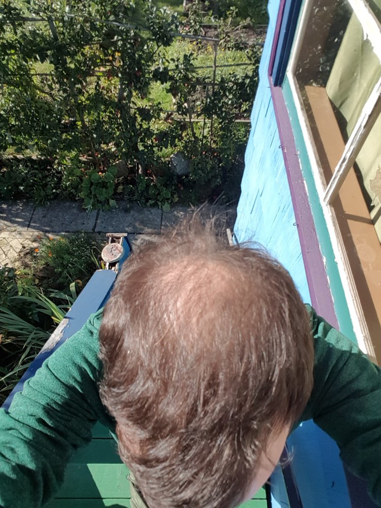 But now, either due to the hormone treatment, the low iron, or just the general shock of recovery, the crown of my head has lost more hair than ever before. I have been thinning on my crown for years now, but very, very slowly, in a way that I could accept. Once my blood levels get back up to normal, my hair usually gets thicker and I can hide it -- but not so anymore. I'm of Irish descent so my hair is naturally thin in the first place, but now it's REALLY thin back there. Also as you can see the corners of my hair line are receded, but that has also been happening for a long time. All the male cousins on my mother's side who are around my age or older have completely lost their hair, almost 100%. So I may be doomed. However, my dad's side shows no hair loss, and my father had none.