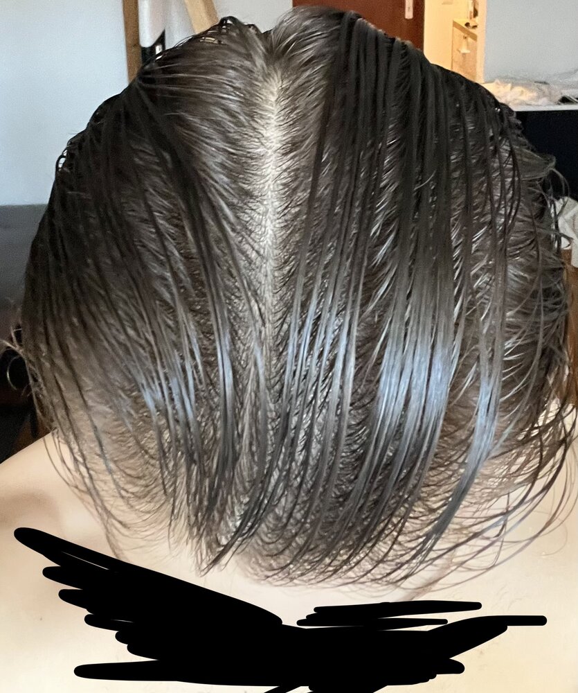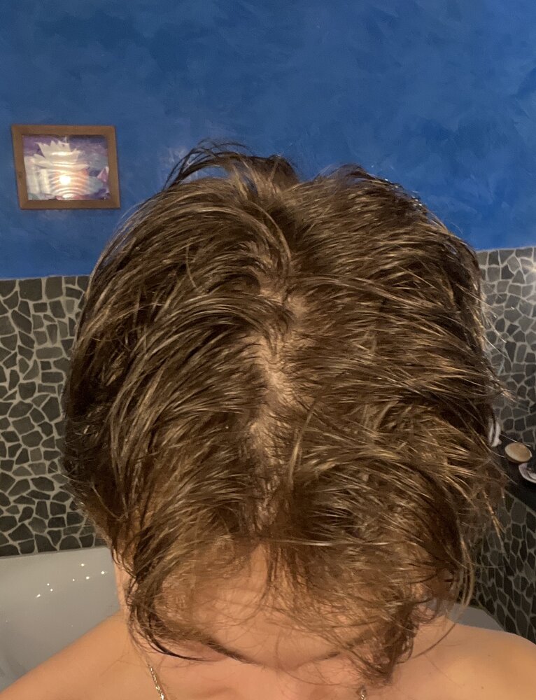 So one and two are freshly shampood. On the first one you can really see my scalp shine through. I have no idea if its normal or not.