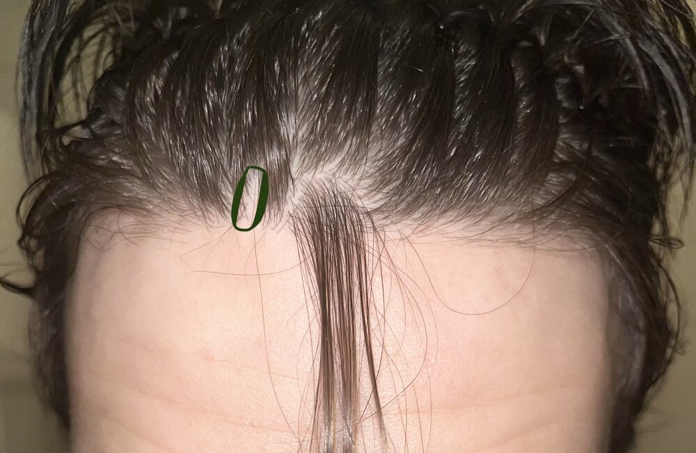 The green marked spot on the 6th picture is a scar, but on 6 and 7 you can see my hair density well. I think it looks totally fine there.