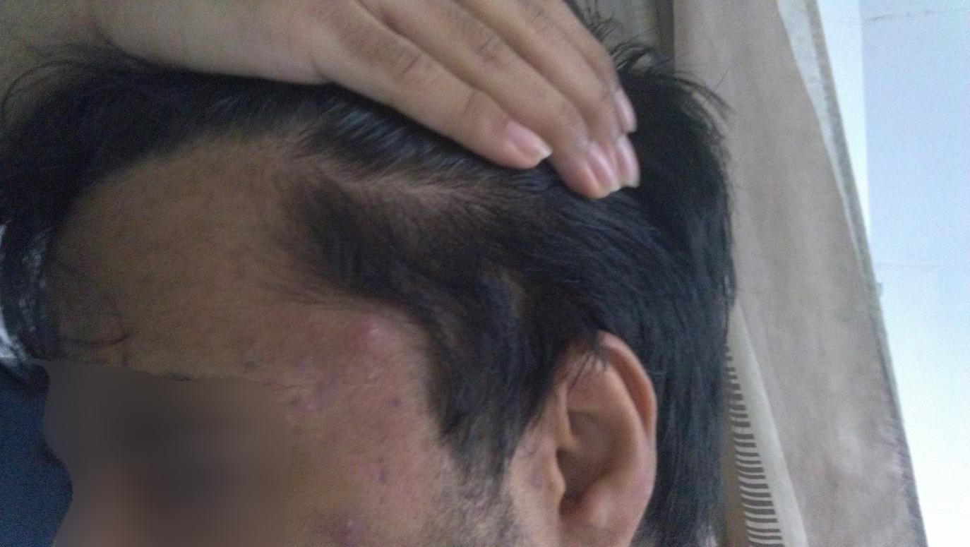 The picture quality isn't good so it's hard to say. Maybe you do have a little bit of receding. Not sure though. Maybe left side of your temple has receded a bit but it's not enough to give a conclusion.