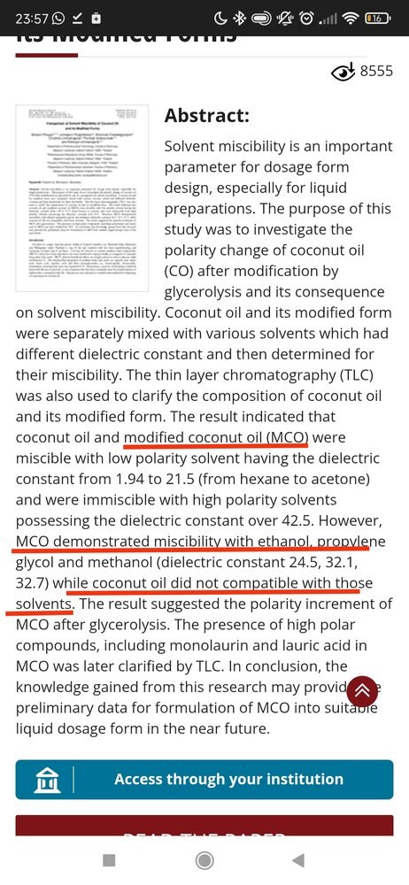 Also you shouldn't use other oils cause they are long chain fatty acid and your ethanol will precipitate. So please stick with MCT oil specifically and if you can, try to get MCT C8 only which would bring the best miscibility in alcohol