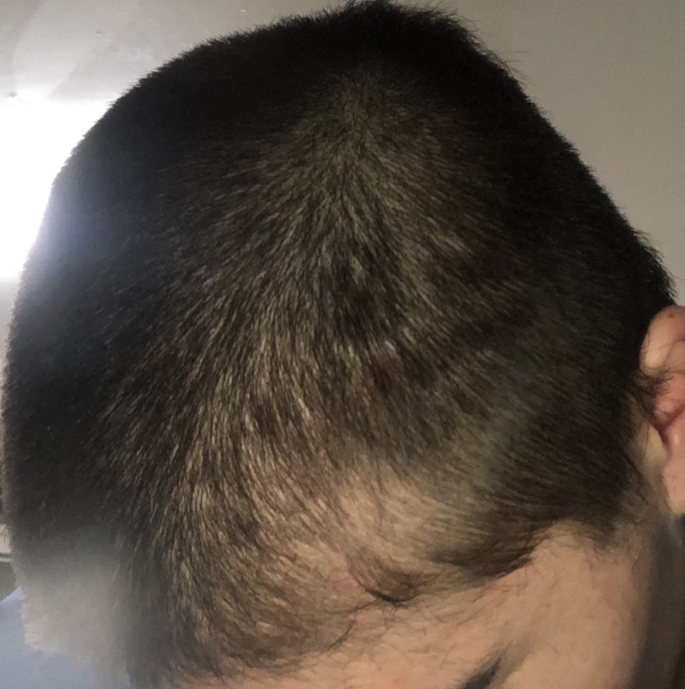 View attachment 138706 View attachment 138707 View attachment 138708 View attachment 138709 View attachment 138710 View attachment 138711 View attachment 138712 Got a buzz cut to see where I was at. Unfortunately there’s some very clear thinning occurring on the crown and the temples. I don’t think anything can make it grow back excluding estrogen, but I have some semblance of hope that oral minoxidil will at least thicken it up a bit once the shed stops.