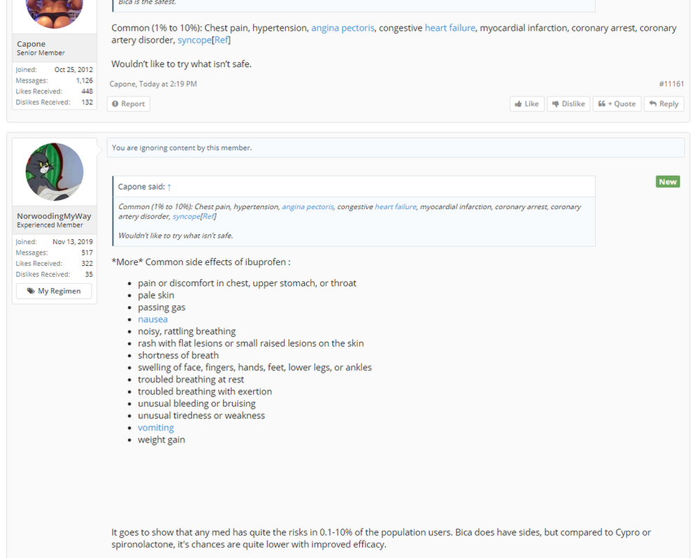 Bica on the other hand, blocks ARs, resultng in no androgen contact with the AR (provided you know the Bica dose you should be taking). Further more, Bica degrades ARs with time. But one important thing, if you are keen on using Bica, you should use it long term. An inappropriate dose or method, can result in AR upregulations. And since Bica is quite expensive, Cypro/spironolactone seem more attractive, and in a way they are (they do their job well).