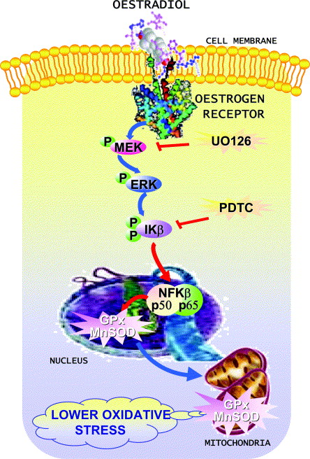" mitochondrial H2O2 production is significantly increased (by more than 50%) after ovariectomy and this is completely prevented when ovariectomised rats are treated with oestradiol at doses similar to those used in oestrogen replacement therapy (for details see [9])."