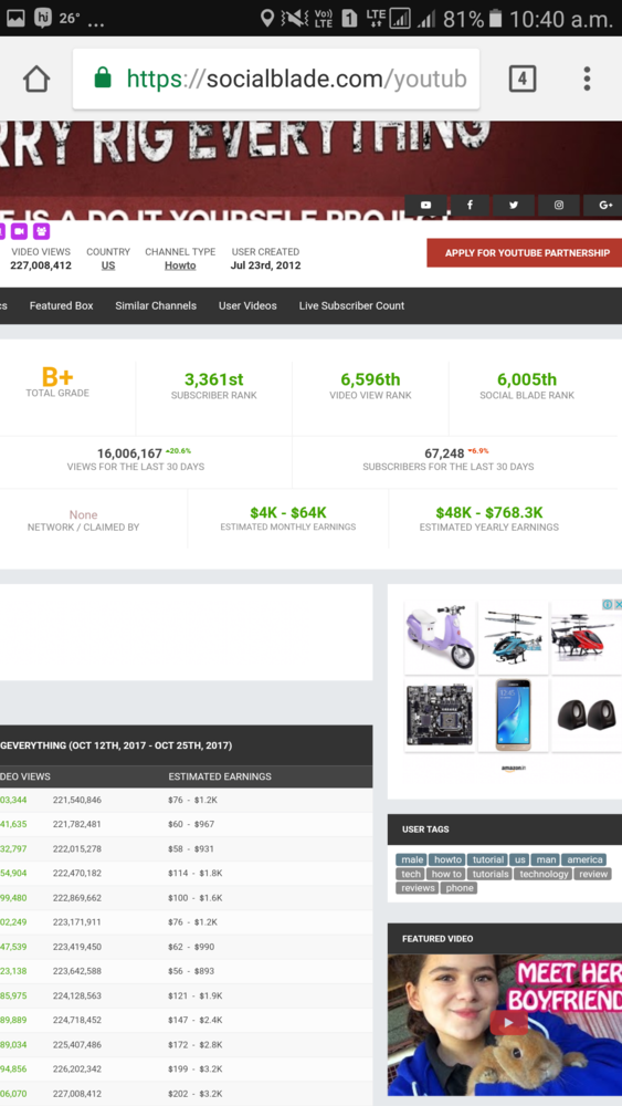 He is new to youtube,he has expanding userbase not limited to US only plus look at his Earnings.