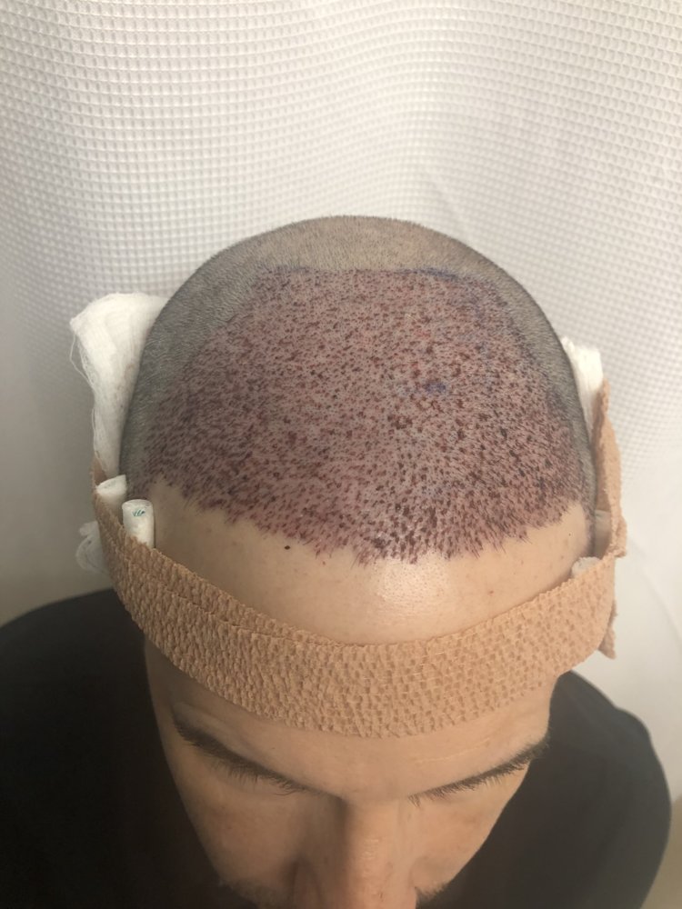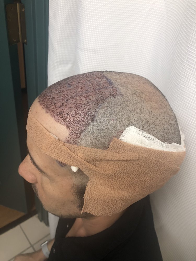 I have so much respect for him and you can tell from the get go that he loves his job. He said he loves focusing on one head at the time and he only leaves you alone for much. He is with you the rest of the time. After the initial conversation we started the procedure by changing clothes and getting my head shaved. I got a shot for inflammation. Right after I laid down and they started the collection from the donor area. I didn't;t feel a thing and I even took a little nap. When he was finished he gave me his glasses to look at my hairs and he said he was surprised because I had a lot of follicles with several hairs (up to 4). Then we stopped for lunch. After lunch we went to the implantation and this part was even more relaxing. When making the incision there is a sound, and it was the most relaxing part. You have a remote to browse through Netflix and watch whatever you want but I was more relaxed than anything else.