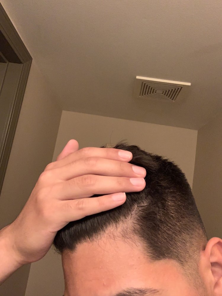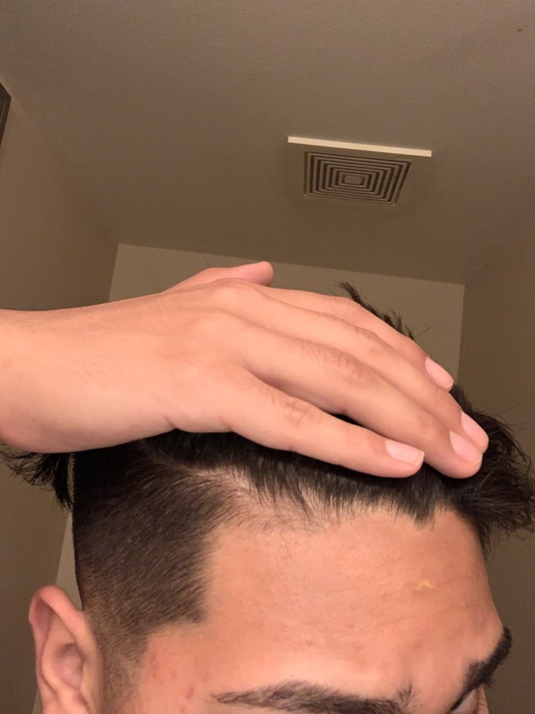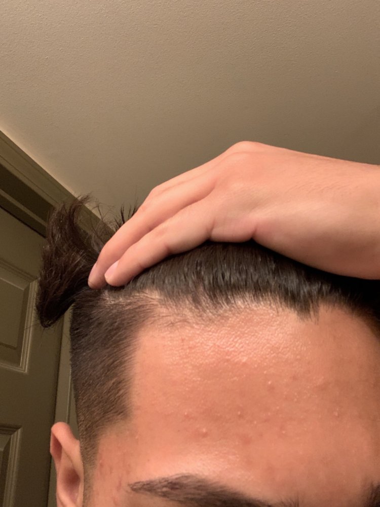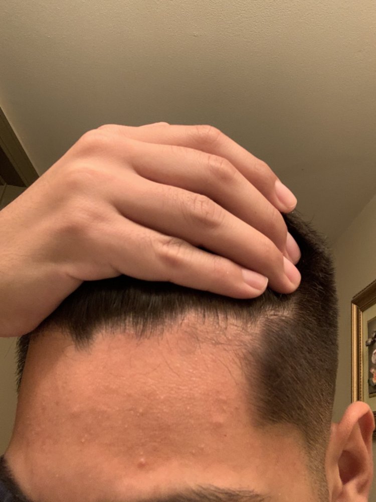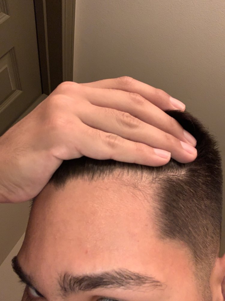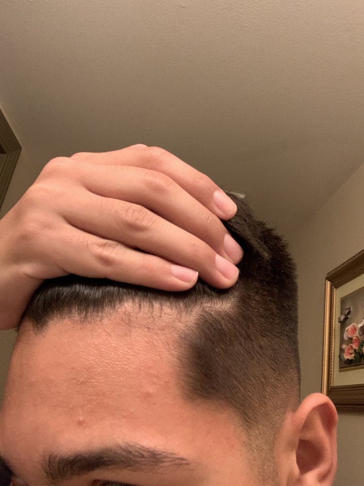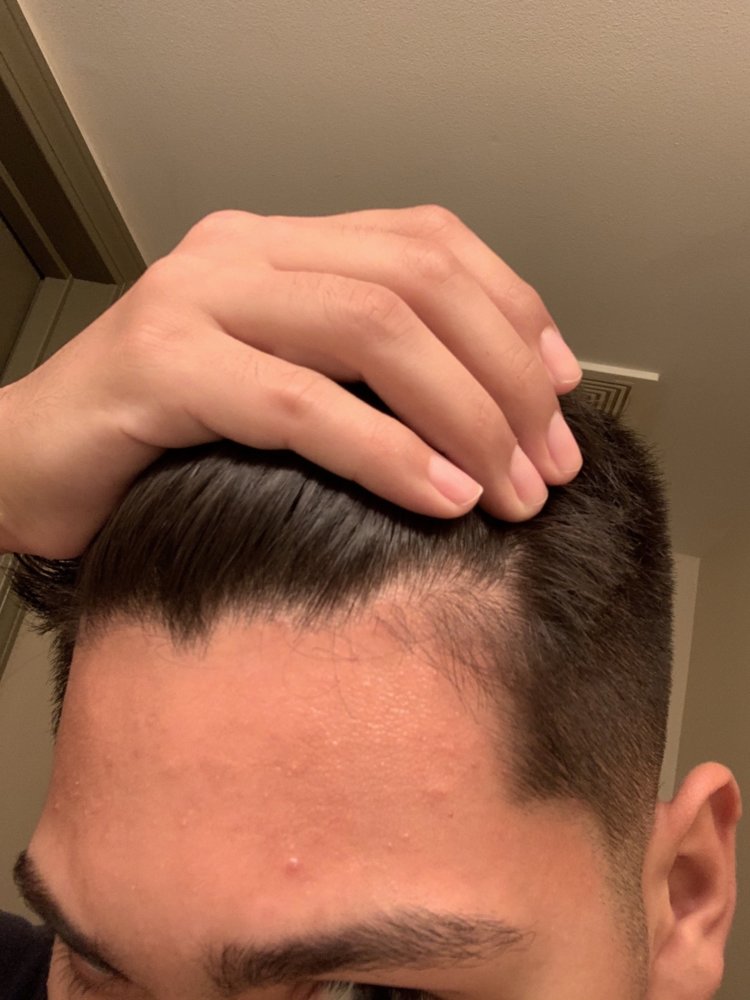 Does my forehead look big. My barber cut some my side burns making my head look bigger. I feel like my hairline looks bad.