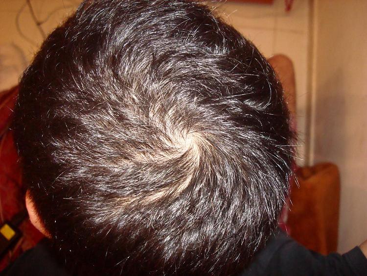 As long as those pics are with flash then you are ok, you could use abit of toppik if its bothering you. And no smoking will not make any worthwhile difference.