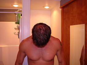 Noticed crown thinning in April. Started Nioxin products...slowly got worse, but not too bad. Added Nizoral in July..noticed some increased thinning, but still not too bad. Around the beginning of September I started Propecia. Within a week I was shedding very badly. I still continue to thin significantly today. I know this is somewhat normal and I'm supposted to ride it out. I plan on it, just getting a little worried. My hairloss went from relatively unnoticable to quite noticable. Here are pics over the last few months. All pics are with damp hair.