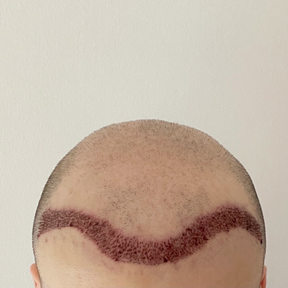 (3) you are pretty much also committed to wearing a hair system permanently. The option of ditching the piece and shaving is going to be much less attractive, because you will have a scar (or at least scarring) at the back and uneven mottled skin under the transplants at the front. You will also look pretty odd when you take the piece off, with your isolated tufts of hair at the front, and the more hair you transplant the odder you will look. So you probably won't ever want to be seen without your piece;