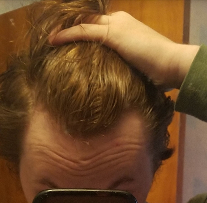 I can see diffuse thinning of frontal hairline. But diffusion is very mild and it is normal. I don't see any issues. Hair on top of head are somewhat less dense than remaining.