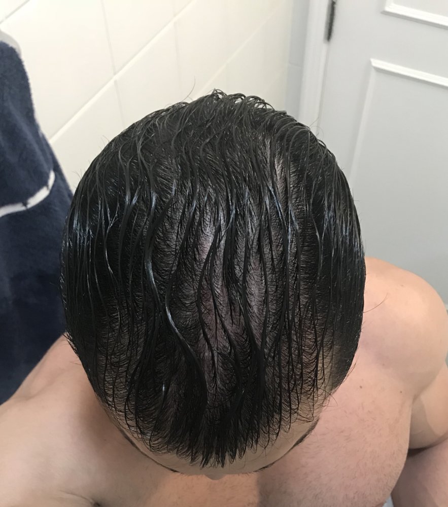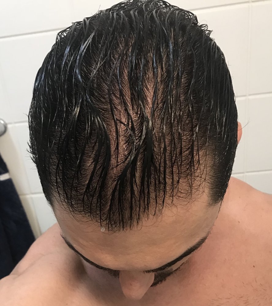 Now i took some pics today with wet hair brooshed back with a strong direct light to view my baldness as much as possible