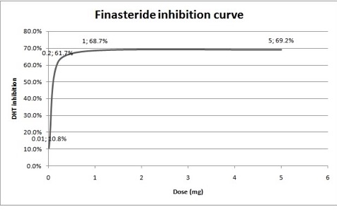 This graph shows that anything beyond ~0.25 mg will hardly change the efficacy of finasteride for you so dont be afraid to change your dosage.