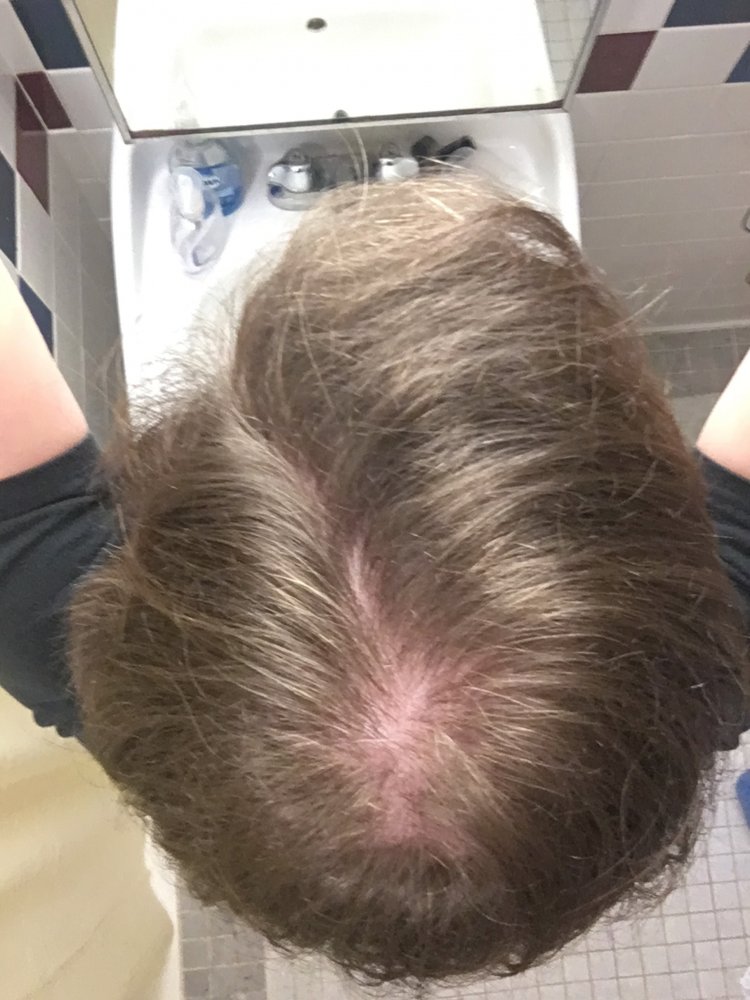 So, my hair is usually rather thick, and for several years I kept it pretty short. I never noticed anything odd with my hair line or my crown. Recently, I decided I was bored with my short hair and decided to grow it out. It's been 6 months since I had a hair cut and MAN am I noticing something that looks like balding. Other people are too. But one friend who noticed said it only looks bald because I'm growing my hair out and the follicles are being pulled or something.