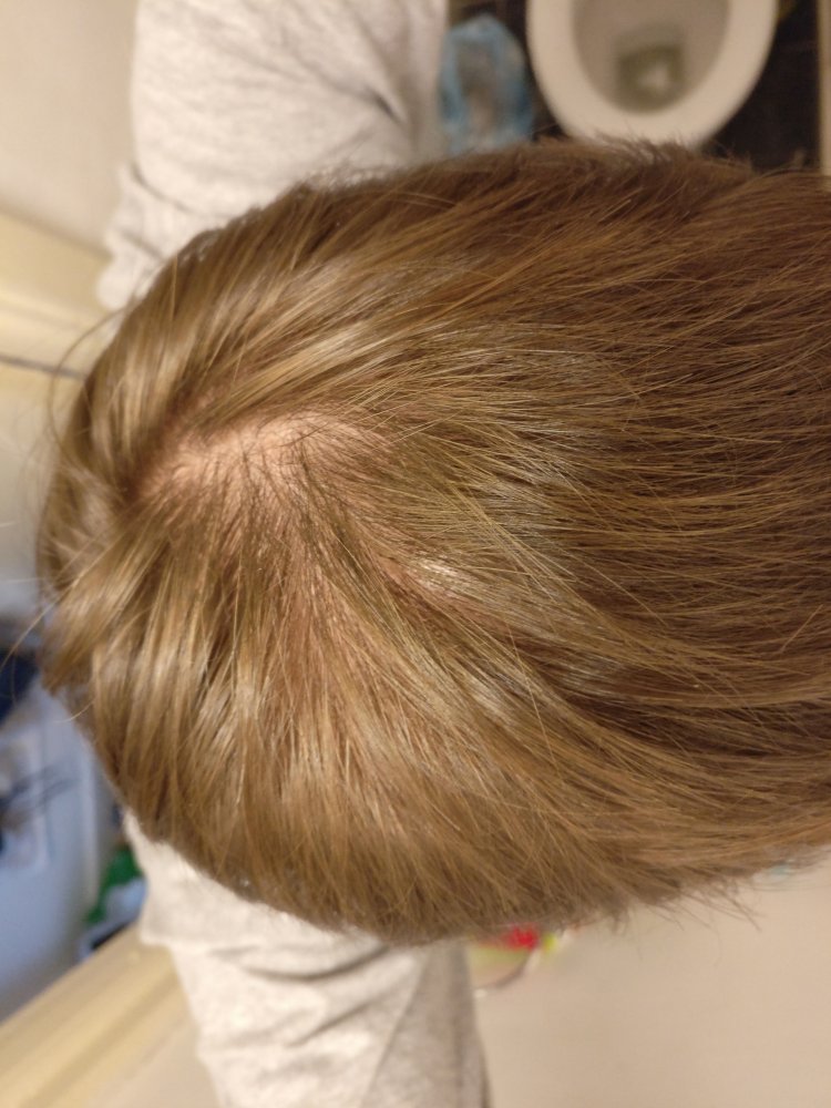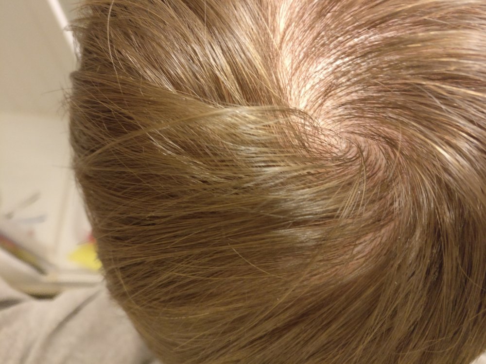 I don't have any pictures of my vertex since before but I took some today, does it look like I am losing hair? Is it normal that you can see that much skin through the hair around the vertex? The pictures are taken an hour after shower and I have no products in my hair.
