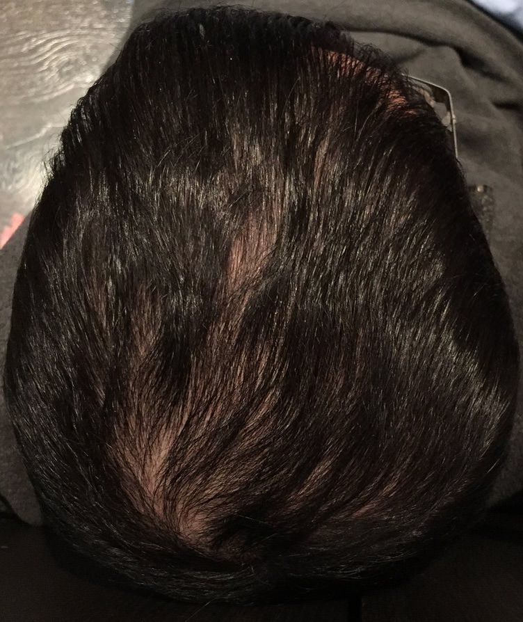 I've noticed my hair has been getting a bit thin at the crown, not noticeable with a short haircut and barely noticeable as hair gets longer and if you know where to look under light.