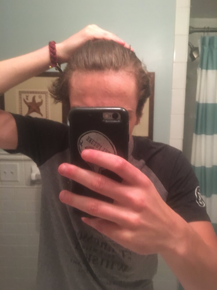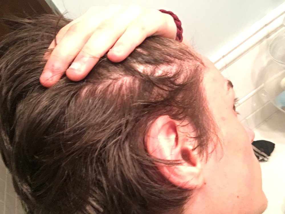 So a little backstory, I've always had some pretty thick hair, and also I've had a naturally higher hairline. The mole on my temple that you'll see in these pictures has been visible since I was about 15 (when I first got a short hair cut). Also, at around the age of 15, I started devoloping an issue with bulimia and anorexia, and had it all the way up until about 1 month ago. For the bulimia, I threw up multiple times a day, for about a full year. During my sophomore year I was about 5"9 and 100 pounds or so. Also combine that with a lot of drinking hard liquor, plus the shitty nutrition, and I feel like I'm a pretty likely candidate for religion effluvium. Just wanted some of your opinions on whether or not my hair was thin because of my recent past or because of male pattern baldness. My mom has some hair loss but that's due to an iron deficiency, my grandpa is about 70 and he has a NW3, or right about, and my dad is 45 and is at a NW2.5, but he also has a shitty diet and health habits. I have a very slight dip towards my temples, and thin hair, but my hair is the same thinness all over my head - the sides, the back, the crown - it's all the same width, it's just thin. So if anyone can tell me the likely hood that this is just caused by my ED's, or if it's actually likely to be male pattern baldness, please let me know! Thank you, also I am 18, and I had bulimia and anorexia for 3 years.