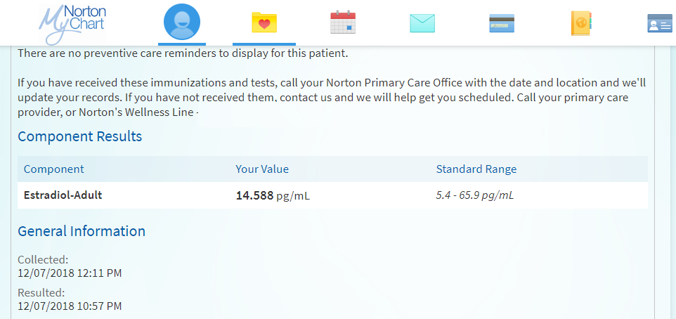 @Ollie we all need to shoot for 20 estrogen, give or take. Other wise calcium will go into our scalp/ blood vessels which could be why we are balding.