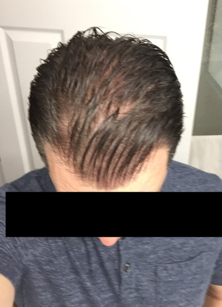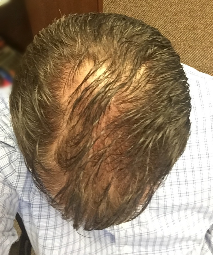 Almost 50 years old, up until two weeks ago, I was blissfully unaware that I was losing my hair up top to diffuse thinning. Literally, I thought I had a complete head of hair up there! This wasn't even denial, I had no idea! My hairline is the same as 30 years ago, so when I looked at myself head on in the mirror, I thought all was good. My wife, family, friends, no one ever mentioned my balding/thinning. I caught a picture of the top of my head recently and said "holy sh*t!" Then started taking daily photos and that was it, I was done.
