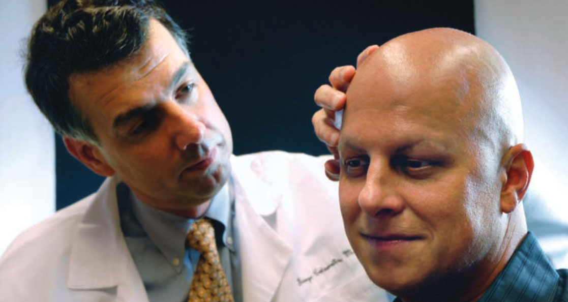 Norwood type 3V, 4, 5, 5A, or 5V, with a vertex area large enough to accommodate both treatment sites, and Fitzpatrick skin type 1-4. "