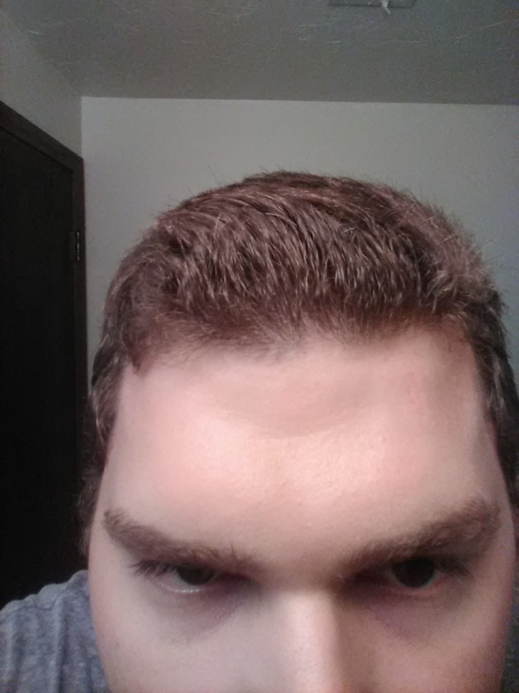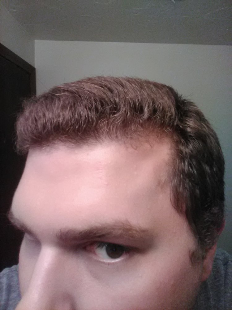 Some better pics in high light of my hairline/front of hair only looks that transparent when i brush it back...but still haven't lost a single strand of hair