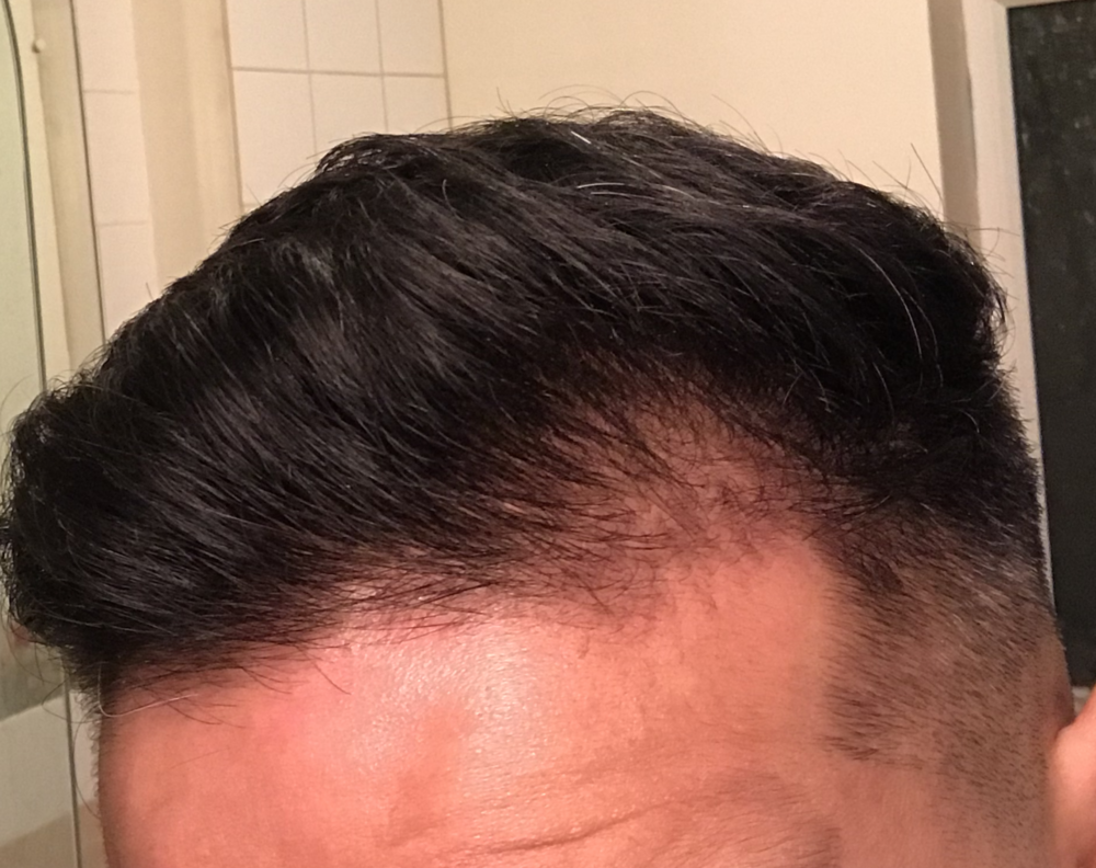 At the moment I'm having to use hair fibres to cover this up everyday when I go to work or go out. When I cut my hair short like I have done now, I've noticed it is always visible. When my hair is a bit longer I can hide it with a sweep over even without any hair fibres.
