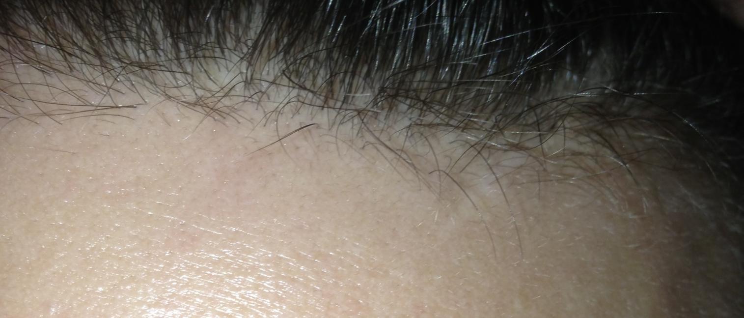 Been out for a bit, here's a couple of the hairline. The scar's not completely gone, you can see it in this pic on the right, there were no hairs in this area when I started. You can find the new hairs by their length, all the shorter hairs are new, some still weak, some starting to thicken up. The bottom quarter all the way across is mostly new hairs that have popped up, and if you look in the top left you can see more going further back in the scalp. The hair on the bottom right in the second pic is the one I was watching obsessively when I started out, lol. It started out weak, and now it's looking pretty good so I have hope for all the other weakling hairs too!