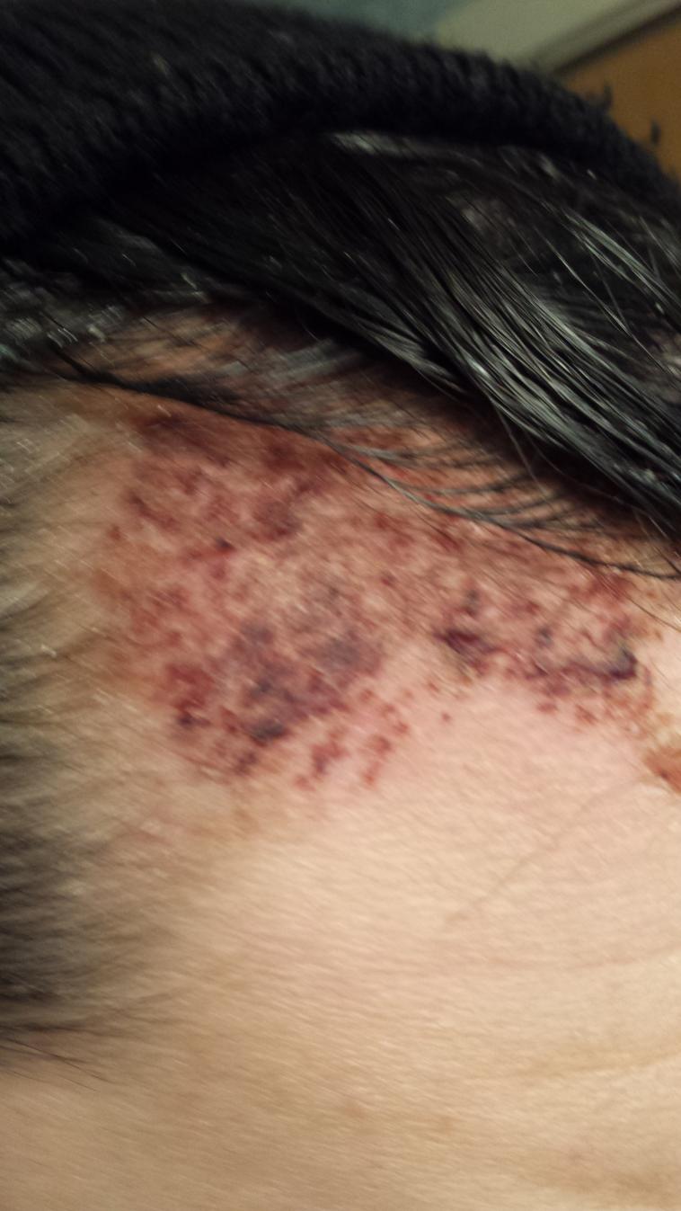 Yesterday i dermarolled my temples with equal pressure. Right side got more blood and left side was very little as you can see.