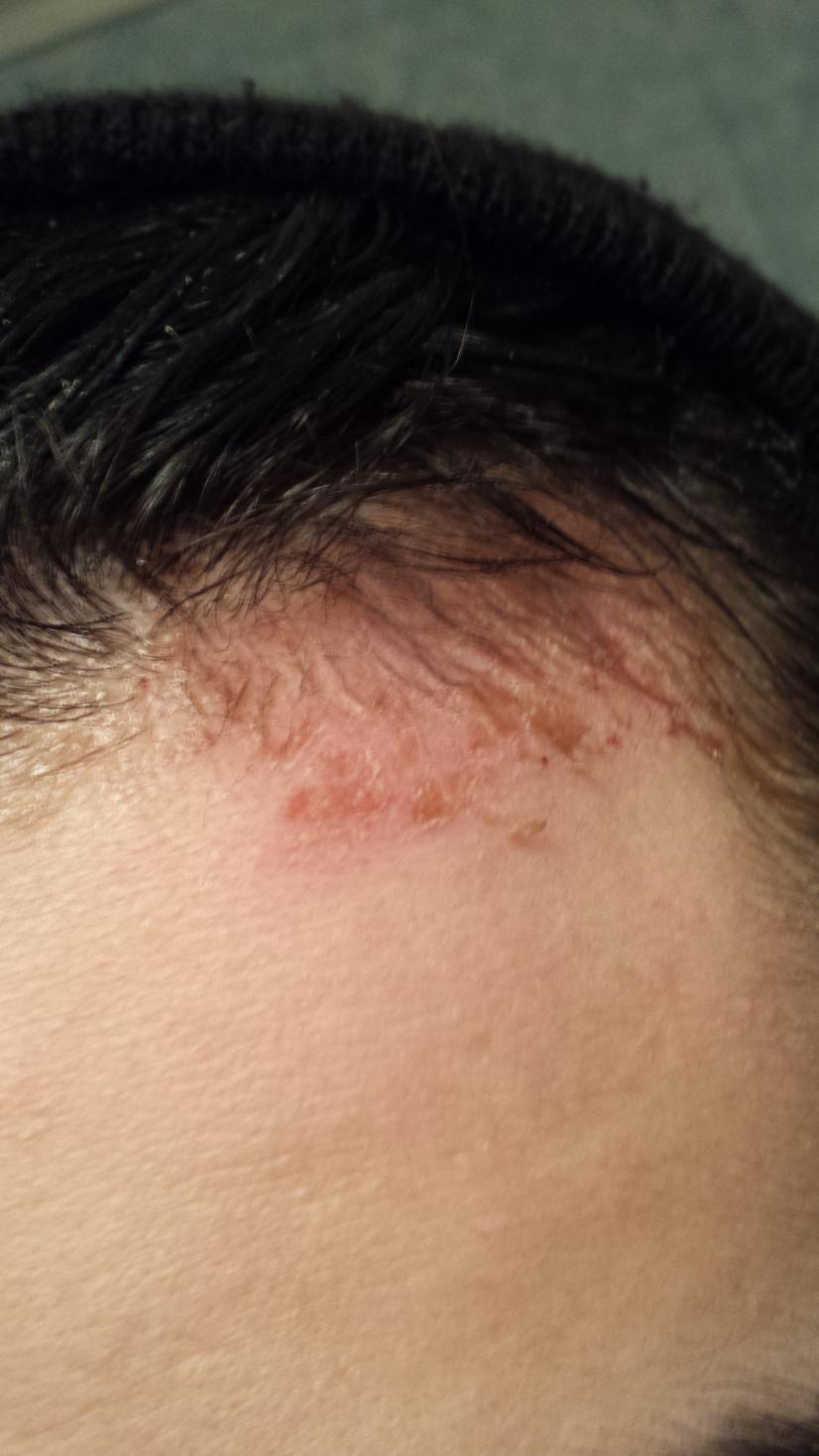 Results: more hair on right temple much less on left.