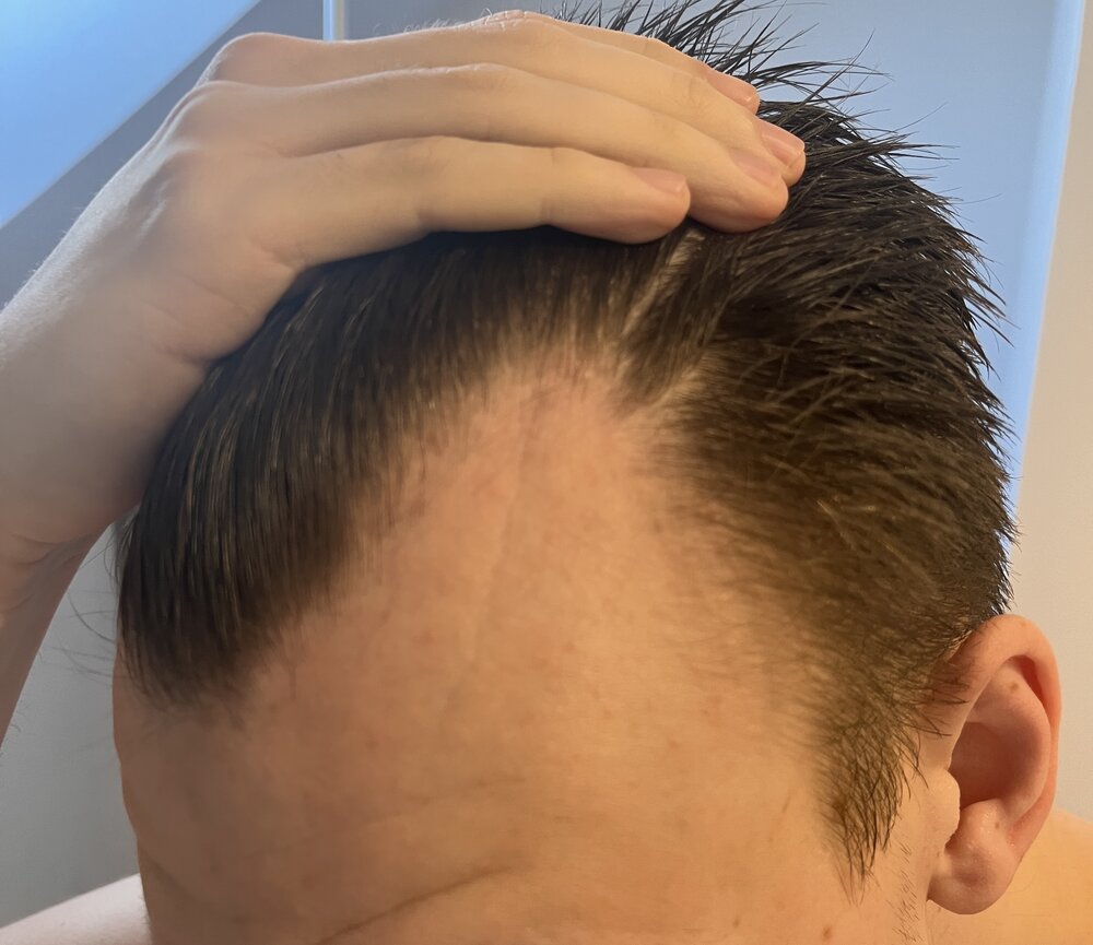 Around three months ago, I incorporated microneedling into my routine, and four weeks ago, I added topical rosemary oil to the procedure. Since then, I've observed new hair growth in my hairline, and it seems the region with remaining hair on my forehead has expanded (although the new hairs are mostly single graft, making them appear thin).