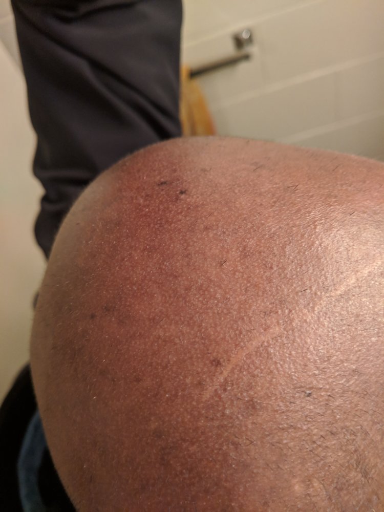 Attached pics. Taken on different days, some right after a buzz and others not so, so don't let the hair size confuse you.