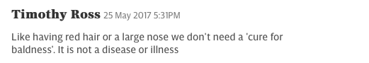 the "Bro, your hair loss is no big deal. Imagine if you were a women!"