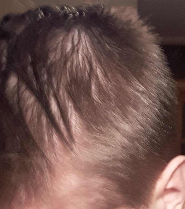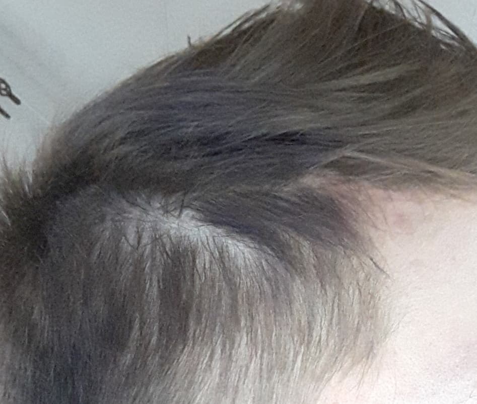 I'm very worried about receding hairline but also about those thinning spaces on sides. Today I woke up and saw those two white circles on both of my sides.