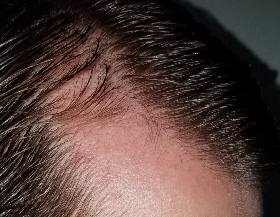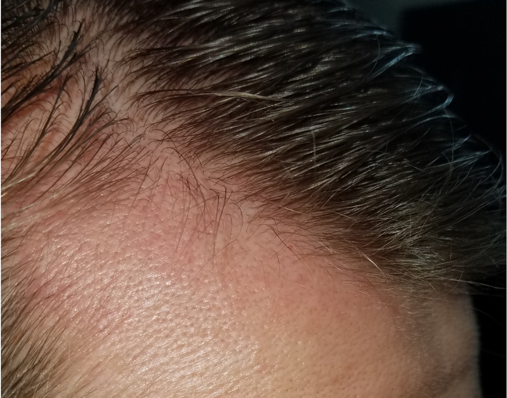 This seems to be some early temple regrowth. Some of it may have already been there, but you can see how low Ive been going with the erythema line.