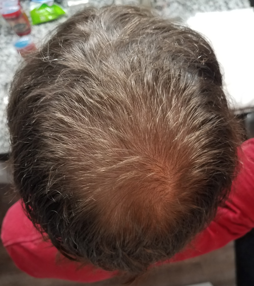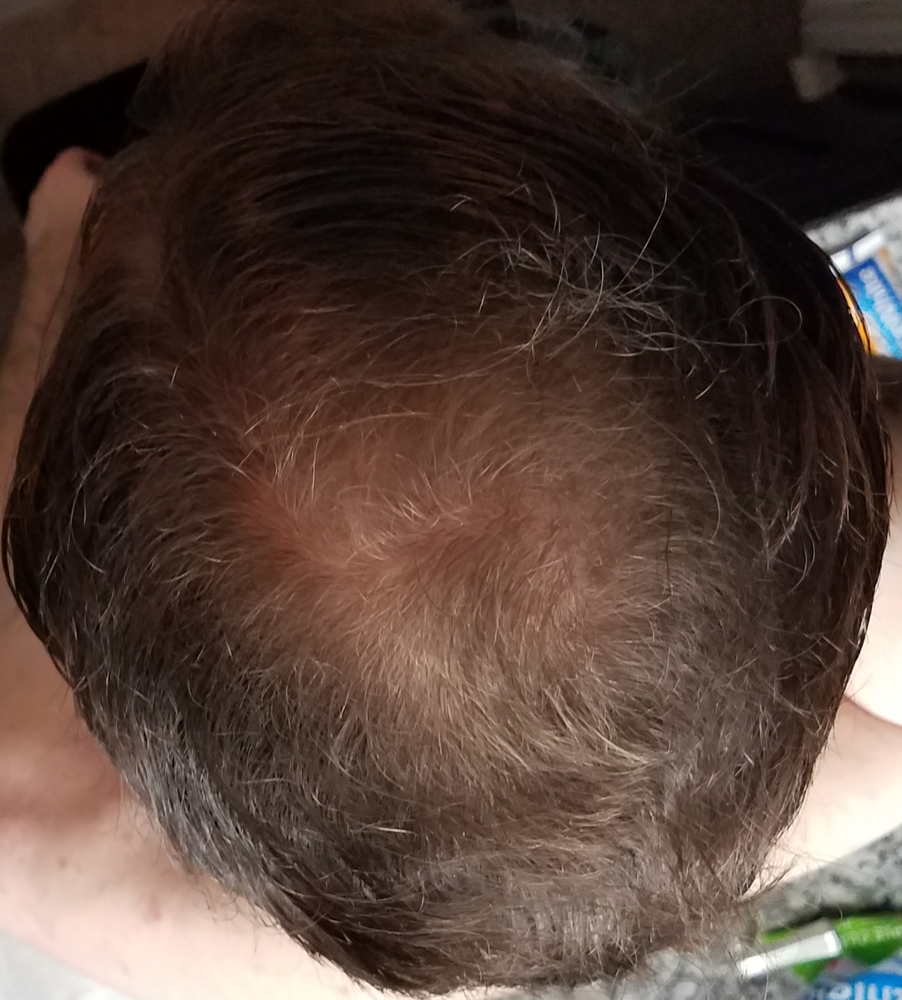 The second crown picture is to highlight increased density by showing new hairs growing where it was originally patchy where hair still was to be found prior to beginning. I remember it was starting to show more noticeble white spots or gaps prior to beginning this journey. Its clear that the new hairs can be seen between the much denser hair follicles that were never lost.