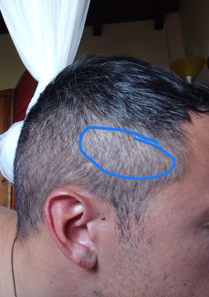 2) can I color the side hair (see blue marking on photo) in black as usual on day 14 if the coloring has no contact with the transplanted and recipient area? (Black L'Oréal hair color)