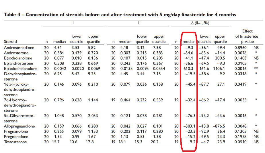 Follow-up to the neurosteroid information. The table attached is from this study which measured neurosteroids before and after finasteride.