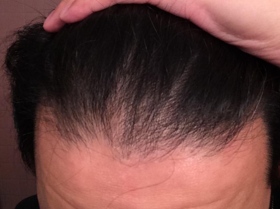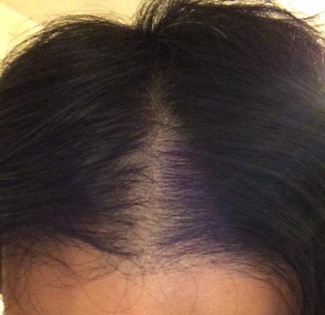 So about 5 months ago i started a diet, pretty strict, about 1400 calories a day, ate healthy but probably not enough vitamins.. about a month ago I kind of noticed my hair was thinning the the front. When I part my hair in the middle you can definitely see that its thinner/wider and gets to normal as I goes back. I also noticed that I see a lot more hair in the bath tub when I shower... I looked back at photos from the beginning of the year and can see a difference, not significant but noticeable.